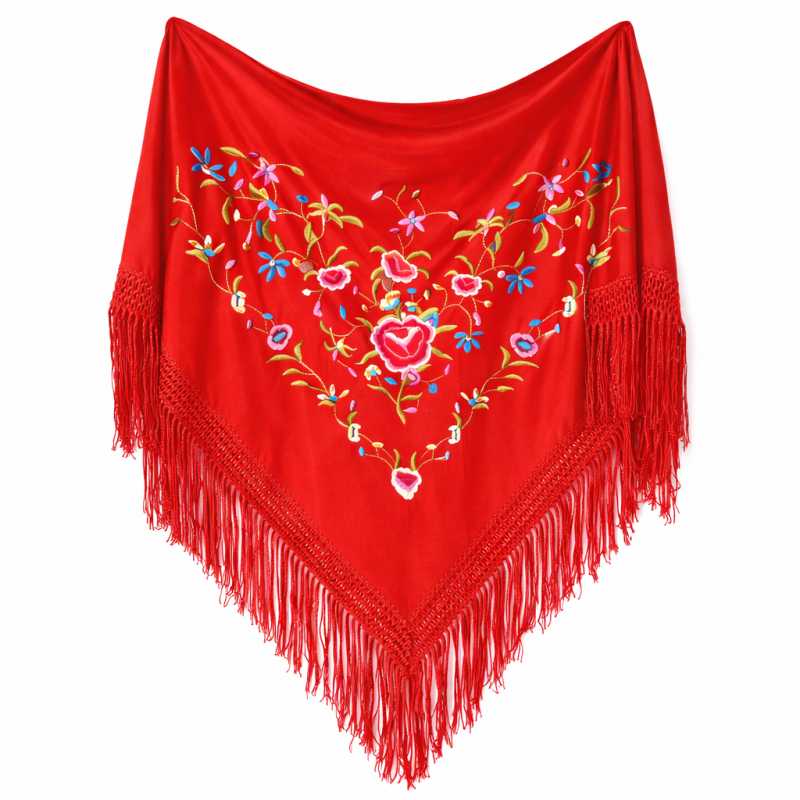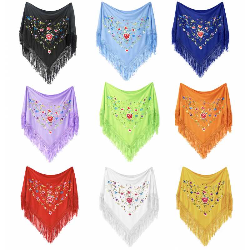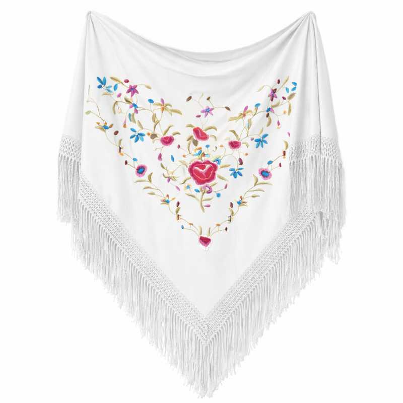 Manton Bordado en Flores Para Adulta. Mantones Flamenco Sevillana para fiesta (C)