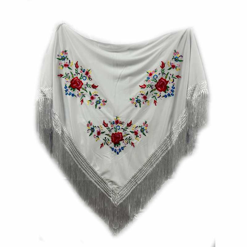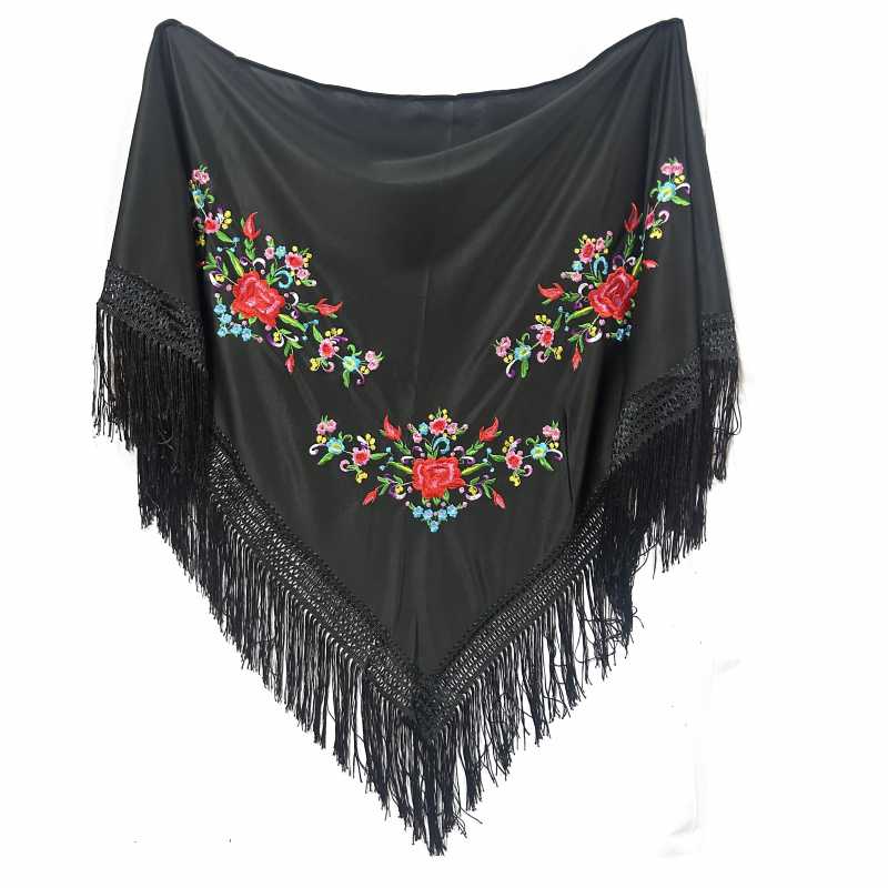 Mantón de manila bordado de Flores con acabado en pico Disponible en varios colores y diseños diferentes para que elija el que más le guste y mejor se adapte a sus necesidades. Poliéster Fabricado 100% en poliester de gran calidad. Sus medidas son 150x70cm (adulta) Perfecto para todo tipo de eventos o celebraciones o para llevarlo en el día a día....