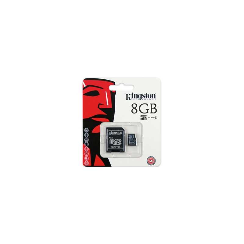 Tarjeta microSDHC Kingston de 8 GB de capacidad. Con una velocidad de transferencia de datos de 4 MB/s (clase 4), aumenta el almacenamiento en teléfonos móviles, smartphones, tabletas y otros dispositivos. De gran versatilidad, lleva un adaptador incluido, con el que podrás usarla como tarjetas SDHC de tamaño completo.